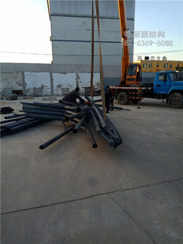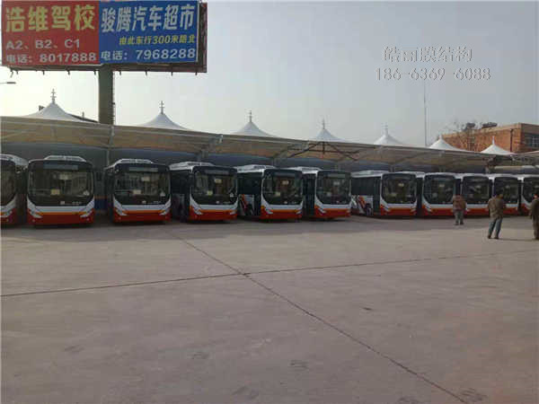 膜結構充電樁,建設單位,保定市榮清國控集團有限公司,地點,交通運輸管理站,本工程采用鋼材規121✘3.5行架立柱,114✘4 89✘3.5行架梁,膜布PVDF1100克刀掛工藝,膜布拉力5200牛,膜布特點,拉力強,耐候性自潔性高,持久耐用.